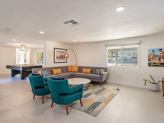 Welcome to Villa Mosaic, located less than 10 minutes from downtown Palm Springs! This vibrant oasis captures the essence of desert living with bright furnishing and iconic design. Lounge by the pool, framed by mountain vistas, reveling in a mid-century retreat that seamlessly blends style and relaxation. Every corner exudes the glamour of mid-century aesthetics, offering a dynamic backdrop for a memorable stay you won't forget!
