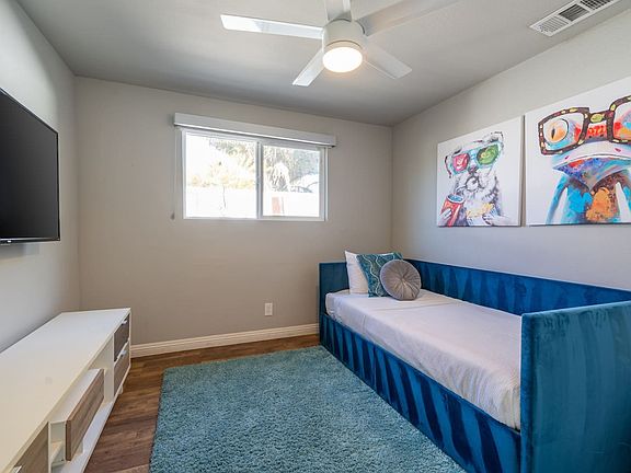 - Bonus room: Twin bed, side table, media console, smart tv, ceiling fan