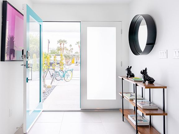 Fully furnished rental, solar powered home centrally located in the Sunrise Park neighborhood near downtown Palm Springs. The newly remodeled home features 3 bedrooms and 4 baths (complete remodel completed in January 2020). New resort style pool and spa completed in the winter of 2024. Outdoor also features built in BBQ area and fire pit. Offering the perfect mix of style and comfort, with curated with vintage and modern furnishings, this home perfectly embodies the Palm Springs lifestyle. From the moment you walk through the front doors, you will be welcomed with an open floor plan featuring magnificent views of mountains and palm trees. The living room and dining area open to a covered patio through an expansive 16-foot bi-fold door, providing the perfect indoor-outdoor experience. The fully loaded kitchen is a dream filled with high end appliances and custom cabinets. Step out onto your patio and relax in various seating areas for lounging, or if you prefer, enjoy a meal in your outdoor dining area. Either way, you will not be disappointed with the spacious back yard featuring beautiful views, a pool and spa. Various citrus trees also offer seasonal fruits in the yard!