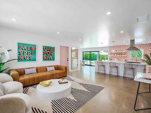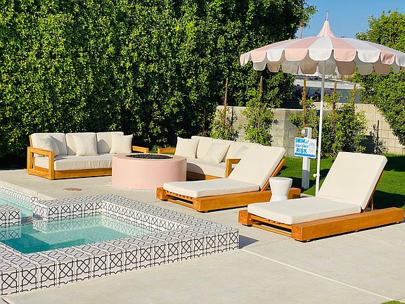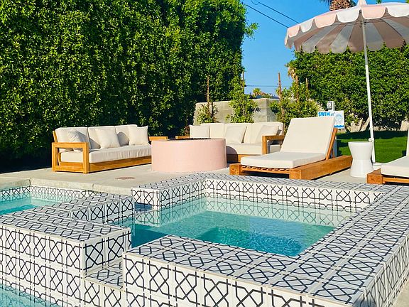 Welcome to Coco Cabana Palm Springs, a luxury vacation rental. Fully furnished, mountain views, move in ready! Expect an elevated experience throughout your stay at this designer mid century modern home. 3 bedroom, 2 bath, ample parking in quaint neighborhood close to downtown and the airport. The inside is stylishly decorated with designer tile & fun pink details. The 12 ft slider opens to a private oversized backyard pool oasis enclosed by lush hedges making it completely private. Backyard boasts an oversized heated pool and elevated jacuzzi, bbq & bar, floaties, yard games, comfortable loungers & umbrellas. For those cooler winter evenings gather around the built in fire-pit. Popular influencer home. This will go FAST!! BOOK NOW!!