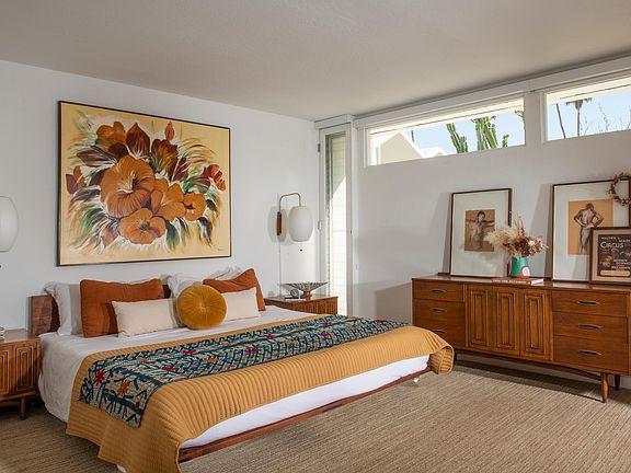 Our home features a midcentury aesthetic throughout with lots of vintage art, and findings we discovered from around the globe. Throughout each room you'll be greeted by a picture perfect view of the San Jacinto mountain range, a short 5 minute walk away.