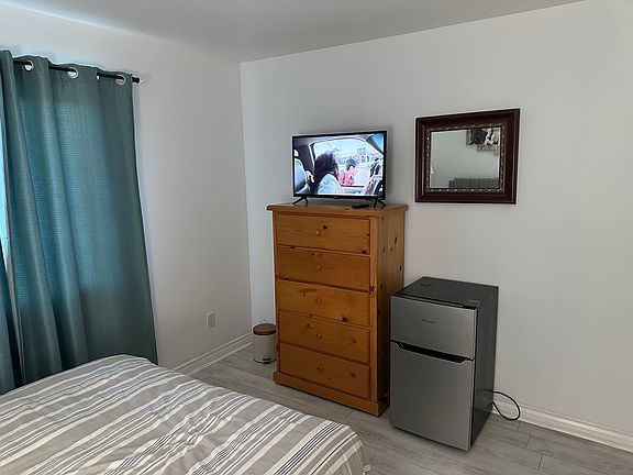 Private Room located upstairs in corner wing of home with large closet, new television and full size bed. It also includes a mini fridge for private use. Brand new renovated flooring. Private Bathroom, shower and tub included. Access to full size kitchen and washer and dryer. Parking is available on site or street parking which ever you would prefer.