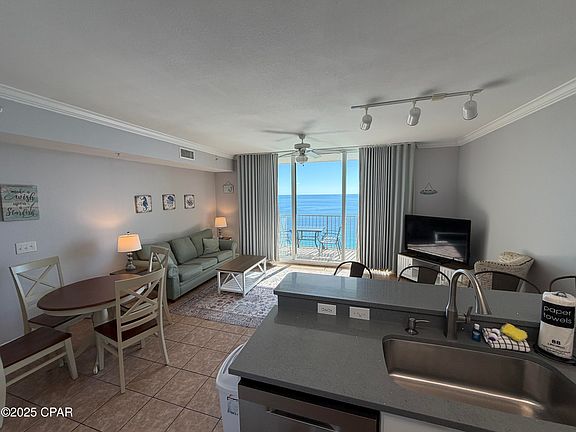 Motivated seller, bring all offers. Tidewater Beach Resort offers this beautifully furnished beautiful luxurious coastal living. Motivated seller,bring all offers.The 'M' plan features convenient bunk beds in the hallway, perfect for additional guests. Plus a sleeper sofa in the living room. Enjoy upscale finishes, including granite countertops in the kitchen, 9-foot ceilings, and tile flooring throughout the main living spaces. Resort Amenities Include: Two expansive Gulfside pools State-of-the-art fitness center Tiki Bar Conference center On-site restaurant and lounge Covered parking garage Theater room 24/7 full staff security Situated on the desirable West end of Panama City Beach, this condo is only a short ½ mile walk from Pier Park Shopping Center and just a short drive to the new Emerald Coast/Panama City Airport