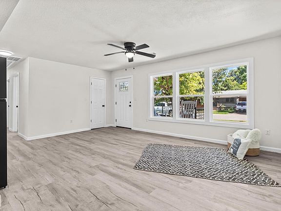 Interior laundry roomNew lvp flooringNew kitchenRoomy backyardLarge shade treesBlack appliances