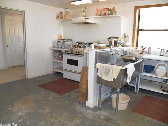 National forest boundary on this approx 20 acres with three 40X100 metal buildings, one of which has 1600 sq ft finished area. In the past there were 2 commercial kitchens. There are 2 sinks, 2 gas ranges, a gas surface cook-top and a refrigerator in the kitchens. 1 full bath, and lots of storage. One building is 36X40. This could be a nice place for horses and living quarters. Close to Irons Fork Lake, with access to lake through the national forest. Subject to restrictions. Inside has been updated.