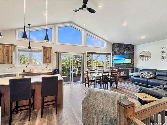 1358 Sq Ft 4-Season Bungalow – Iroquois Lake Just over an hour from Saskatoon and Prince Albert, this 1358 sq ft raised bungalow is a year-round retreat at beautiful Iroquois Lake. Known for its crystal-clear water, great fishing, and water sports, this lake is the perfect four-season destination—whether you’re paddleboarding in the summer or ice fishing in the winter. The home features 5 bedrooms and 3 bathrooms, with an open-concept main floor boasting vaulted ceilings, large windows that fill the space with natural light, a stone natural gas fireplace, and a well-appointed kitchen with a large pantry. The primary suite includes a walk-in closet, fireplace, and ensuite, while two additional bedrooms complete the main level. The fully developed ICF basement offers 9’ ceilings, 2 more bedrooms, a games room, and plenty of space for extra company. Utility features include a well, 300-gallon holding tank, 1500-gallon septic, reverse osmosis system, Starlink internet, and video monitoring. The attached garage provides 12’ ceilings for storage. Outdoor living shines with two large decks—perfect for morning coffee or evening wine. An adjoining lot is also included, ideally suited for a future cabin, a large shop for all your lake toys, or as an investment to resell. Located just steps from the lake and public beach, this property is an excellent opportunity to enjoy lake life in comfort and style. This could be your happy place.