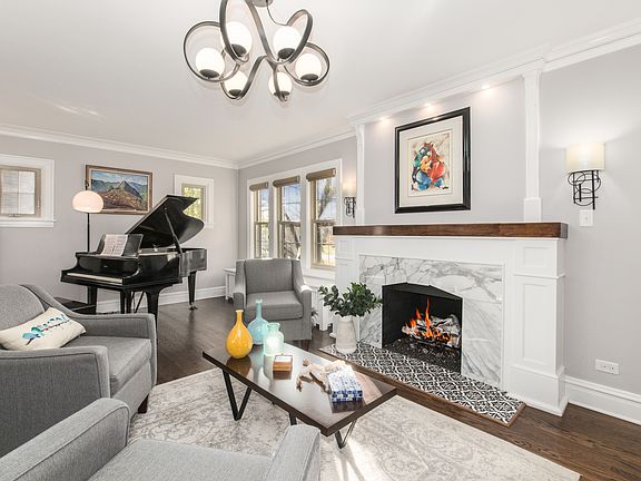 Vintage charm seamlessly meets modern convenience in this exceptional "walk-to-everything" home, located just four blocks from Uptown and all it has to offer. With over 4,500 sq feet of living space. Hardwood floors flow throughout the home, complementing the classic living room featuring a gas fireplace and a quiet, inviting ambiance. The second floor offers four bedrooms, three full baths, and an open loft, creating a functional and flexible layout for today's lifestyle. The first floor showcases an open-concept design with an updated chef's kitchen equipped with a Wolf range, Bosch dishwasher, Sub-Zero refrigerator, and a large island ideal for meal prep and gathering. A spacious eat-in area opens to the expansive family room, complete with a wood-burning stone fireplace and sliding glass doors leading to the covered porch-home to the third fireplace, also wood-burning, perfect for enjoying cool evenings outdoors. The primary bathroom has been thoughtfully updated. Additional 2 bathrooms on the second floor also updated. The basement provides multiple living options with two distinct areas: a large recreation space ideal for movies, games, and entertaining, plus a separate area perfect for working from home or welcoming guests, complete with a custom built-in desk and a fourth full bath. Ample storage throughout. The backyard is an extension of the living space, offering a beautiful covered porch with generous room for dining, lounging, and grilling. With the outdoor fireplace, outdoor enjoyment continues well into the cooler months. Additional features include two laundry rooms (second floor and basement), a whole-house generator, a 50x174 lot, and a 2.5-car detached garage. Favorable Taxes. The elementary school is just a two-minute walk away. Leave the car at home and enjoy quick access to the Metra, restaurants, shopping, summer concerts, and more.