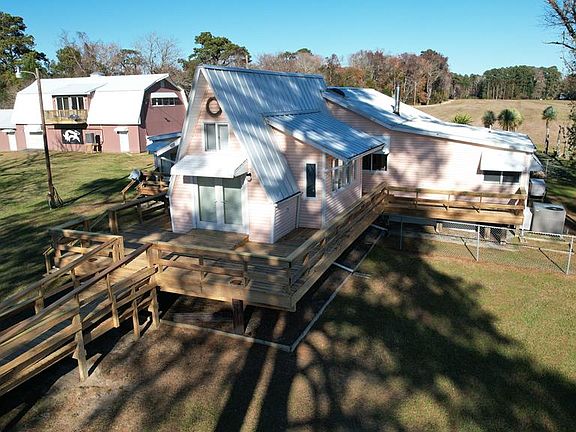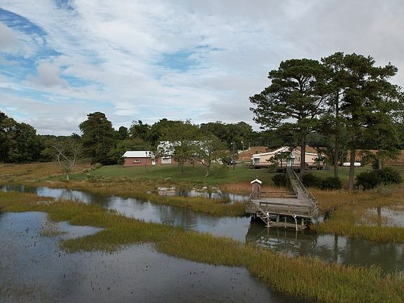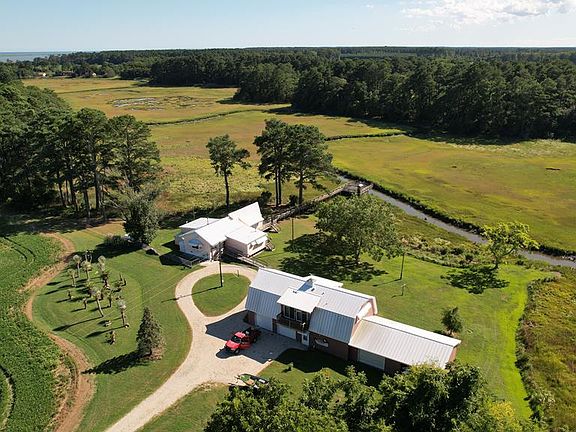 Scenic 35 ac. Seaside Waterfront Farm on Whites Creek at Metompkin Bay/Crippen Creek waterways. Lodge style home, with custom mill paneling & cabinets, large brick hearth with Fisher woodstove/fireplace, spacious great room, 2 master suites, lots of windows/views & light. Tiny 2nd floor kids loft w/spiral stairs for beds/play/storage. Standing seam metal roofing & awnings. Lg deck and pier to 24' x 30' creek side deck/dock with small skiff access & a short ride to Barrier Island Beaches, incl. Gargatha Inlet. Property includes a large barn with 5 bays and a modern, spacious 1 bedroom second floor residence with beautiful views & Balconies. Central fiber optic to the home broadband service by ESVBA, Ring Security, 2 Generac generators-house and barn. Detailed information attached under docs