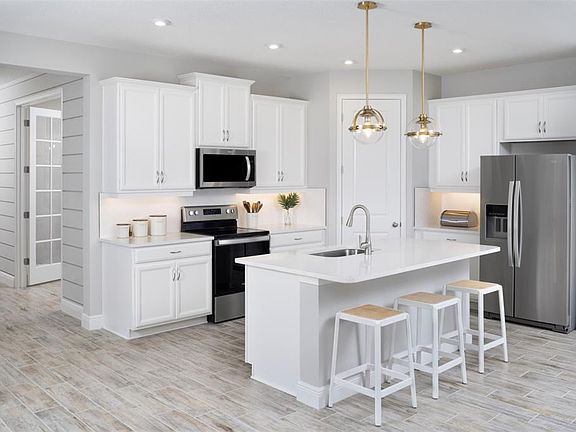 Under Construction. The Glades is a well-designed single-story home offering just over 2,000 square feet of comfortable, open concept living space. Featuring 4 bedrooms, 3 bathrooms, and a 2-car garage, this home is ideal for anyone who values both function and flexibility. At the heart of the Glades is a spacious kitchen that spans two walls, offering plenty of room for appliances, storage, and meal prep. A central island with a breakfast bar makes quick meals or casual gatherings easy and enjoyable. The kitchen flows effortlessly into the dining area and great room, creating one large open space that's perfect for entertaining. The dining space comfortably accommodates a table for up to eight, while the great room offers ample seating and features glass sliders that open to a covered lanai—perfect for indoor-outdoor living. The owner's suite is tucked at the rear of the home for added privacy. This peaceful retreat includes a walk-in closet, raised dual sink vanity, glass-enclosed shower with a high-level window for natural light, and a linen closet for additional storage. Bedrooms 2 and 3 are located at the front of the home, just off the foyer, and share a full hallway bath—ideal for guests, or home office needs. There is a bedroom, located off a separate hallway alongside the laundry room, adds an extra layer of privacy and versatility for a private bed/bath area. Whether used as a home office, hobby room, or quiet retreat, this space easily adapts to your lifestyle. The Glades is situated in the highly desirable master-planned community of Crosswind Ranch in Parrish. Residents will enjoy access to future resort-style amenities, including a pool, covered cabana, pickleball courts, a tot lot, paw park, and miles of scenic walking trails—making this home a perfect blend of comfort, community, and convenience. Photos, renderings and plans are for illustrative purposes only and should never be relied upon and may vary from the actual home. Pricing, dimensions and features can change at any time without notice or obligation. The photos are from a furnished model home and not the home offered for sale.
