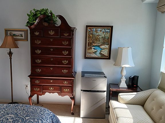 Your room and bathroom are in the first 6 photos. Your room is large, 15' X 12' with 9' closet, your room is furnished, it has it's own little fridge w/freezer, mini sofa and desk. The Tempurpedic, hybred mattress, is very comfortable. Freshly painted walls with black out window shade and woven woods. Your large bathroom is 1 step away. You'll have full use of the house, large laundry room inside. High speed internet, reverse osmosis water, bedding and bath towels are included. Custom home has huge kitchen with appliances. Cross streets are Deer Springs & Running Stag Way. Very quiet, upscale neighborhood with sidewalks and trails. Beautifully landscaped yard with 3 patios, dozens of rose bushes & yearlong flowering bushes and trees. Restaraunts, Gyms, Walmart and Bars within 2 miles. Charging $50 monthly towards utilities. First, last & $800.00 security due at move in. Background and Credit report required. Prefer not to rent monthly, longer agreement preffered. There are currently 2 adults, the landlord, and one large, non-barking, dog in the home. Ten minutes to the Templeton Hospital. Please call for quickest response, I'm not alerted when I receive a text or email. I'm available to show it most days but this site wouldn't allow me to list them.