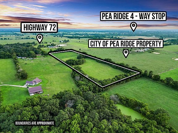 This 9 acre parcel is situated in Pea Ridge just off Hwy 72 down Patton Road. The parcel shares a border with property recently acquired by the city of Pea Ridge where a future sports complex is slated to be built. Additionally, several new subdivisions are coming down Hwy 72 as this portion of Pea Ridge continues to grow. This rectangle parcel has a pond in the middle and is close to the Military Park. Due to how the land is situated, an appointment will be needed to view the property. There is also a video of the land so be sure and ask for the video link. Use 13649 Tate Ridge Pea Ridge AR for a GPS address to get you close to the property and look for the sign.