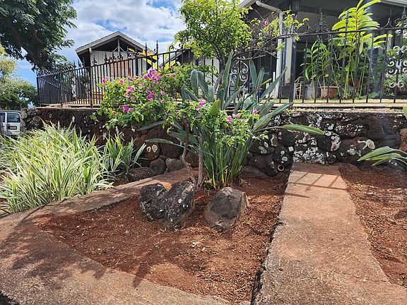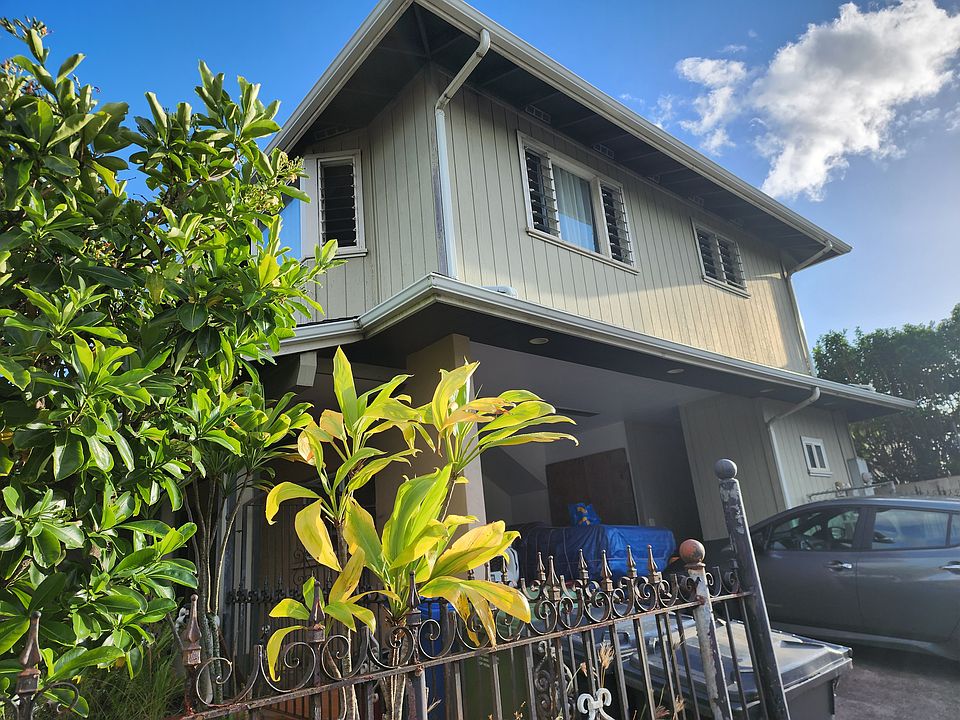 Entire beautiful 2-story, 7-bdrm/5-ba home on corner fenced/gated lot available for rent! Freshly painted exterior & interior and new garage door. Relax in the front & back covered patios, sit and meditate at the fish pond among lovely flower trees, and enjoy some sun and fun in the swimming pool! Tons of storage space to include 2 separate attics, a large storage room, and a stand alone storage shed, and a full bath off of garage. Downstairs = 4-bdrm/2ba, living room w//double French doors leading to the front covered patio w/fishpond/yard, separate large family room w/1 split a/c unit and ceiling fans, new stove/sink/kitchen counter tops/toilets/bathroom vanities, refurbished cabinets, tile flooring in all rooms, master bedroom w/full bath has sliding door to pool area. Upstairs = 3-bdrm/2ba, split a/c in each room & living room, and ceiling fans in every room, laminated wood flooring in each room & tile flooring in baths, large master bedroom w/full bath has a sliding door/balcony overlooking swimming pool and breathtaking views of Pearl Harbor, open kitchen with island, large picture windows in living room w/cool breezes flowing throughout. Conveniently located along upper Pearl City bus line and across a large park for playing baseball, soccer, flag football, etc. Local elementary school and churches within walking distance. Grocery stores, hardware stores, gas stations, lots of eateries/restaurants, hospital/clinic, and shopping malls in close proximity. Perfect home for a large extended family!