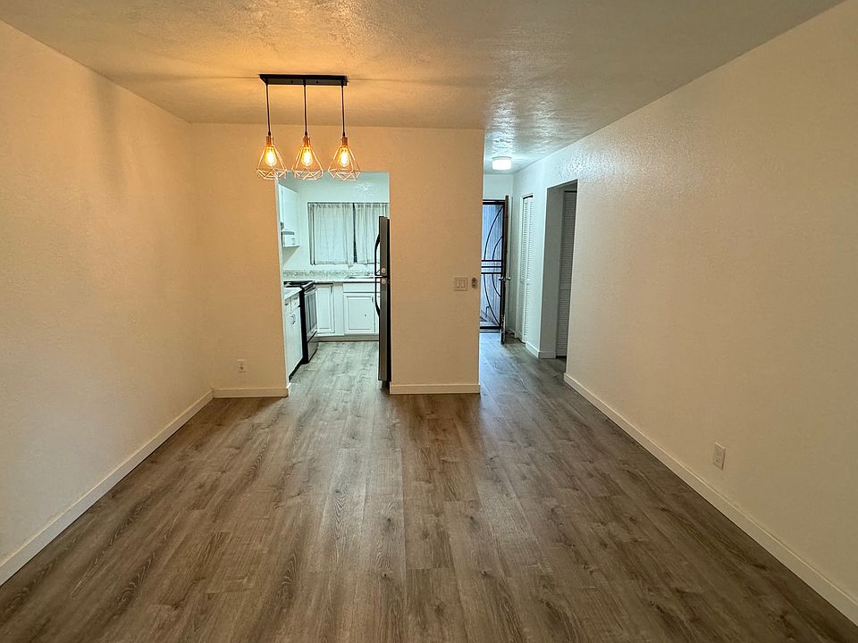 Freshly painted home with a renovated bathroom, new full-size washer and full-size dryer, refrigerator, and partially-open backyard. The home has been well-kept and clean and is move-in-ready.