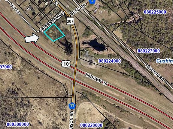 Are you looking for a great space for a smaller commercial business? You can carve out this half-acre site in the (unincorporated) town of Cushing exactly as you want it. Easy access off and onto Hwy 10. Great site for a service business: Roadside Stand, Coffee Drive-Thru, and more.