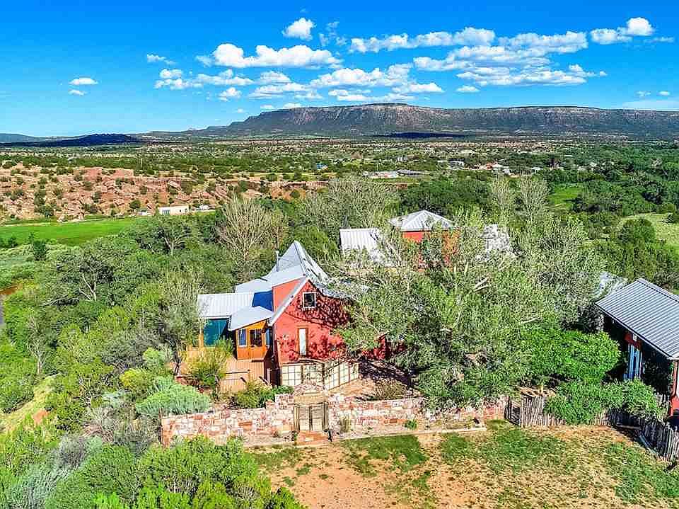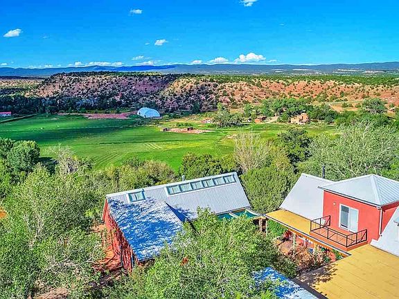 Architect designed and well constructed Northern New Mexico style compound on the Pecos River! This artistic retreat is perfectly sited on a hill overlooking the beautiful Pecos River Valley. 36 acres with 1/2 mile of riverfront and wonderful cottonwood bosque. The 1440 sq ft abobe main house, 1660 sq ft guest house/art studio and 400 sq ft office/library are arranged around a charming central courtyard. Commanding views from the two balconies and deck with improvements that blend in perfectly with the surroundings. Plaster walls, vaulted ceilings, stained concrete and wood flooring, custom cherry cabinets, imported tile, custom lighting, radiant floor heat, sauna and steam shower. Outdoor hot tub, landscaped gardens, and extensive water catchment system. Fish for trout or swim in the Pecos River. Make the short trip into Santa Fe for wining and dining or just enjoy the solitude in pampered comfort.