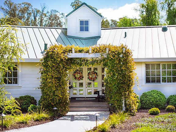 Introducing Bullfrog Farms, nearly 7 acres in Penngrove, a charming old-world town at the gateway to Wine Country. This renovated 3BD/3BA farmhouse blends country character with modern luxury, showcasing a chef's kitchen with Viking range, Thermador oven, dual Bosch dishwashers, marble island, and custom cabinetry. The open-concept great room includes a gas fireplace and custom banquette seating, while the primary suite features a spa-inspired bath with heated floors, peek-a-boo fireplace, Toto heated toilet, cedar walk-in closet, and serene views overlooking the pond. A reimagined barn, integrated into the main home with a separate entrance, offers flexible space with a gym, office, media room, flex area, and bath. Outdoors, a Brazilian hardwood deck captures the beauty of the picturesque pond and the property's retreat-like setting, complemented by a tiled patio with fans, hot tub, and outdoor shower. Additional upgrades include Marvin windows, Hardy Board siding, standing-seam metal roof, 200-amp power, and modern mound septic. Flat, usable land offers endless possibilities with easy access to Hwy 101, downtown Petaluma, and all the charm of downtown Penngrove perfect for an ideal country lifestyle.