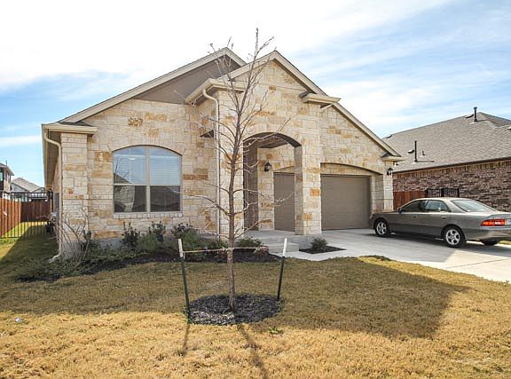 Enjoy living in a very nice FULLY FURNISHED single story home in a newer and nicely maintained neighborhood where homes sell up to the mid $700's. Beautiful wood floors, open floor plan with living, dining & kitchen all opening to each other. Primary bedroom and ensuite offers privacy. Architectural details, great location, refrigerator, water softener, granite countertops in kitchen, garage door opener, and study with french doors which could be used as a fourth bedroom, all on a quiet cul-de-sac. 100% masonry.