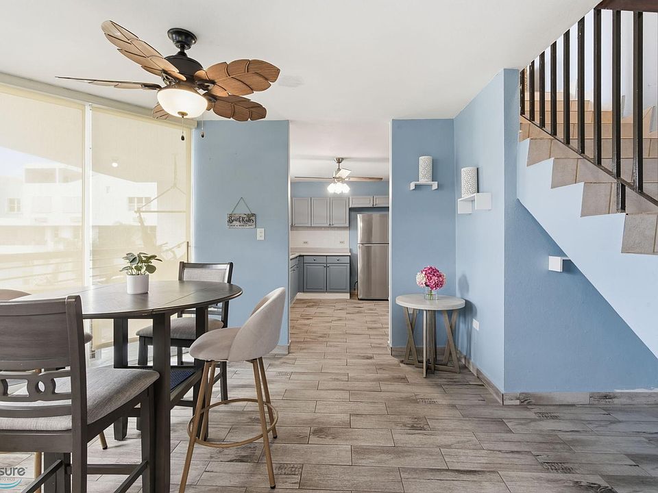 Oceanfront Penthouse in Chalets de la Playa (rare on the market). Get ready to live the resort lifestyle you've always dreamed of! With 1,605 sq ft of living space, three spacious bedrooms with a/c units, two full bathrooms, two half bathrooms, kitchen, laundry room, living room with split a/c unit, dining room, balcony, and a rooftop terrace with amazing ocean views and sounds, ideal for relaxing and enjoying tropical living with loved ones and friends. The unit also includes one deeded parking space for two vehicles back-to-back. Chalets de la Playa is a unique complex with a wide variety of amenities for entertainment and relaxation, allowing you to enjoy yourself year-round. It features direct beach access, two swimming pools, tennis, basketball, and beach volleyball courts, a recently updated gym, a children's playground, controlled access, and ample visitor parking. It also has one of the best HOA administration on the island..