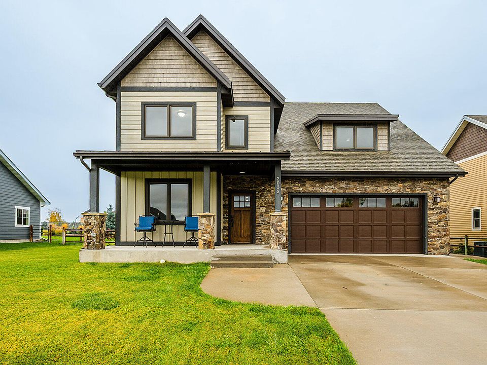This appealing two-story home in the coveted Cloud Peak subdivision is a great blend of an abundance of living space, along with tasteful finishes and design. The front porch, beautiful roof-lines, and tidy landscaping welcome you from the curb. Attractive tile and real hardwood flooring flows throughout the open main level, featuring a large kitchen with an abundance of cabinets and countertop space. The living room is accented with a cozy gas fireplace and mantle, and an office at the front of the house provides for a serene and professional workspace. Upstairs you'll find a spacious primary suite, two generous guest bedrooms, and a second living area. For outdoor space, there is a quaint patio complete with a pergola and hot tub, along with a fenced yard and automatic sprinkler system. For outdoor space, there is a nice patio complete with a pergola and hot tub, along with a fenced yard and automatic sprinkler system for the nice landscaping.