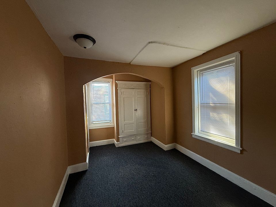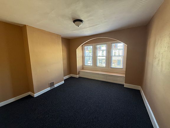 Freshly painted house with laminate floor on first floor and carpets on second. Small backyard and enclosed porch on the front. Washer and dryer in the basement