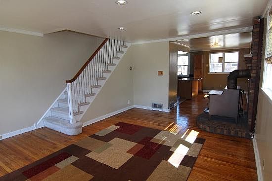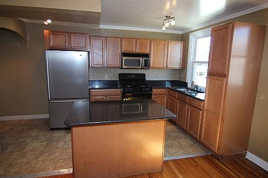 This freshly painted home boasts a fully renovated kitchen with beautiful granite counter tops and hardwood floor throughout the 1st floor. The property also comes with a refrigerator, stove, dishwasher, and washer/dryer in the unit! 2nd floor comes with carpets throughout and a recently upgraded bathroom. Enjoy a TV in the semi finished basement with a full bathroom and additional space that could be used as an additional bedroom. This lovely home is a corner property that comes with central air/heat, has a large front lawn, large fenced in backyard and has a storage shed in the back.