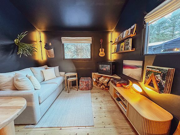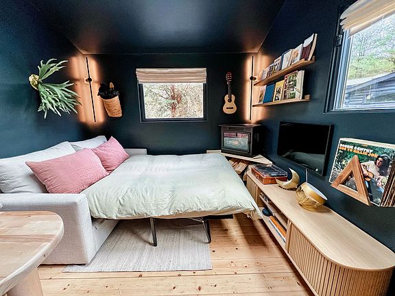 The Way Out House, the next highly-furnished marvel from The Agrarian Home design duo, is a popular tiny home AirBnB that is now preferring longer-term rentals this winter, anywhere from two weeks to three months.