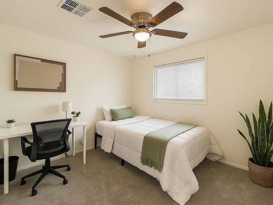 Only 1 room left book fast! Enjoy a clean, quiet home in a small, respectful community of vetted PadMates. Perfect for students and professionals who value comfort, convenience, and safety. Features & Amenities Private, furnished room with full bed, TV, desk & storage Fast fiber Wi-Fi ideal for work or study In-home washer/dryer no laundromats needed Full kitchen access 3 clean, shared bathrooms Central A/C & ceiling fan Smart lock entry with personal code Location & Convenience 5-minute walk to GCU Close to I-17 freeway, bus routes & groceries Driveway & street parking available Extra Perks Bi-weekly cleaning of shared areas No move-in fee Stay 6 months Get 1 week free Super-responsive host with top ratings Everything is move in ready, we keep things simple so you can focus on studies, work or just relaxing. Modern furnished room with a TV, cozy bed, desk, personal fridge and stylish decor. Features a smart lock for keyless entry, reach-in closet, and ceiling fan. Enjoy FREE fiber optic WiFi and in-house laundry with washer/dryer. Quiet, well-maintained property with shared amenities.