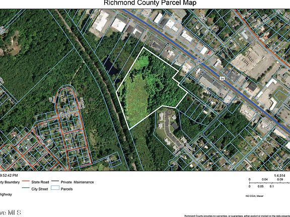 Approximately 9 acres per Richmond County tax records, offering a versatile tract within Rockingham city limits. City utilities are available, and a main sewer line already runs through the property. A railroad easement borders the rear of the land, adding unique potential for future use. Portions of the property fall within a FEMA flood zone. No current survey on file. One should verify exact acreage, boundaries, flood zone requirements, and suitability for intended purposes.