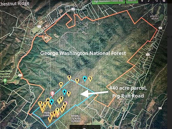 ''CHARLIE'S CABIN'' Grab your boots and load your ATV to explore this 440 acre unrestricted retreat property with newly constructed 12x20 off-the-grid cabin located on Chestnut Ridge overlooking the Deerfield valley in beautiful Bath County. This stunning property features a great opportunity for a hunting preserve, ATV riding, and private getaway home with miles of good interior roads to roam. The property consists of thick hardwoods, a bold spring, feed creeks, unique rock features, and seasonal mountain views. Bordered on two sides by the George Washington National forest for thousands of acres of hunting. Enjoy low property taxes and possibly take advantage of State and Federal tax credits still in tact. Call for a tour today to full appreciate this mountain playground!