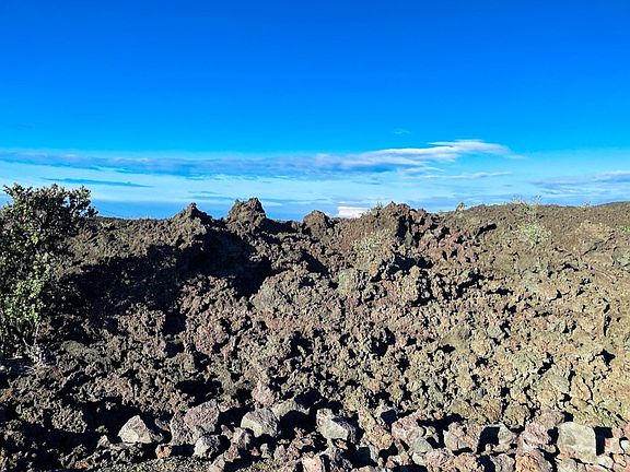 Lovely wide one acre lot up at about 4800 ft elevation! Cool mornings and evenings…Bring your building ideas here—-SSPP power available ($3,238 fee). Ocean Views from the lot! This lot wont last long! Front pins are visible. Lot located in Lava Zone 1.