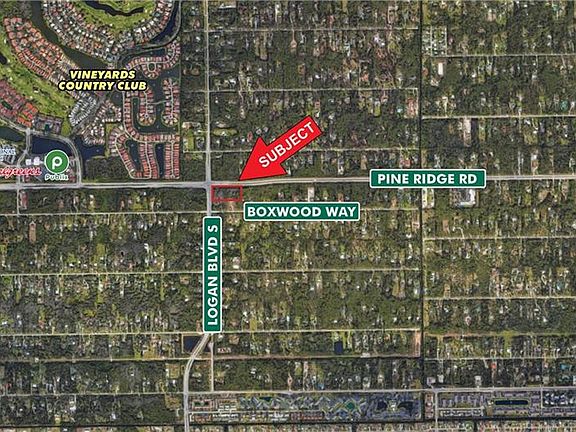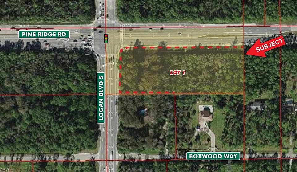 This 2.8± net acres is situated at the SE corner of the signalized intersection of Pine Ridge Road and Logan Boulevard S, a high traffic intersection boasting almost 70,000 vehicles per day and surrounded by both established and growing residential communities. Excellent visibility and access from three road frontages, Pine Ridge Road, Logan Boulevard S and Boxwood Way. Subject to amending the GGAMP (Golden Gate Area Master Plan), the current Estate District zoning has the potential of being developed into an ALF project, Place of Worship, School, Nursing Home, and more. The site also offers the potential for Commercial, Gas Station, Car Wash, Drug Store, and Retail use, subject to rezoning as well as amending the GGAMP. PLEASE SEE THE ATTACHED "SUPPLEMENT" FOR MORE DETAIL.