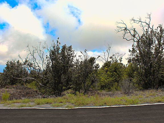 This property is vacant land with a'a, pahoehoe lava and ohi'a trees. There is a loosely graded driveway and house pad slightly overgrown with brush, but easy to clear. Small art room with glass walls that let you see the beautiful nature around you to inspire your inner artistic inspirations! Amazing star gazing at night; dark enough to see the Milky Way! Mild days and cool nights. No power is available; however, this is a perfect lot to go off-grid with solar power!