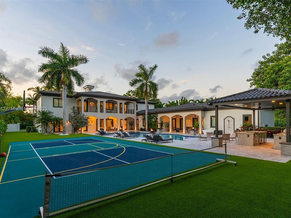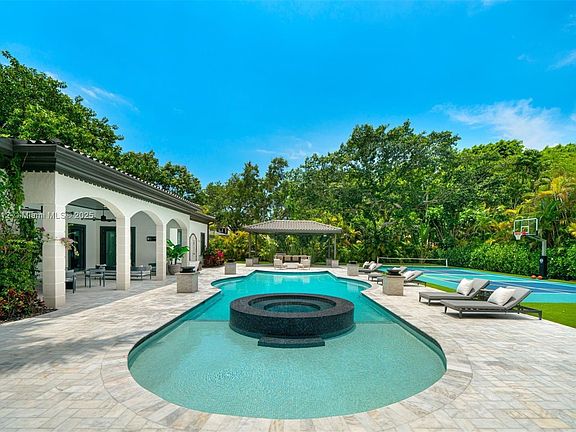 Located in a sought-after Pinecrest neighborhood with top-rated schools, this gated 7-bedroom, 8.5-bath estate is move-in ready and filled with standout amenities. The backyard features a saltwater pool, spa, cold plunge, sauna, gym, pickleball/basketball court, and a fully equipped summer kitchen, ideal for entertaining and everyday enjoyment. Inside, the open layout includes a chef's kitchen with a striking L-shaped marble island, a formal dining room, and a living area with a fireplace. The ground-floor primary suite offers a private sitting room entry, dual walk-in closets, and a spa-inspired bath. Additional features include smart home technology, a three-car garage, and renovations throughout. Experience the privacy, space, and lifestyle this Pinecrest estate offers like no other.