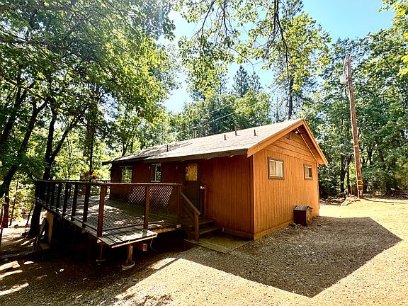 Discover your ideal retreat with this charming 2-bedroom, 1-bath cabin set on 3.05 acres of tranquil woodland. The property presents great potential for a lot split, offering flexibility for future development. Inside, you'll find a warm and inviting atmosphere highlighted by a wood-burning stove for cozy evenings and vaulted wood ceilings throughout, creating a spacious and rustic feel. The large, open living and dining areas ensure everyone can gather comfortably and stay connected during entertaining. A dedicated laundry room adds convenience, while the expansive basement provides ample storage. An oversized workshop offers plenty of space for hobbies, projects, or additional storage. Safety is a priority, as the property has received Calfire's defensible space certification, which helps reduce wildfire risk. Located just a few miles from hiking trails, lakes for fishing and boating, and a variety of outdoor activities, it's perfect for outdoor enthusiasts. Additionally, the property is conveniently close to shopping and essential services, seamlessly blending rustic charm with modern amenities and development possibilities. Don't miss this opportunity to own a serene woodland haven