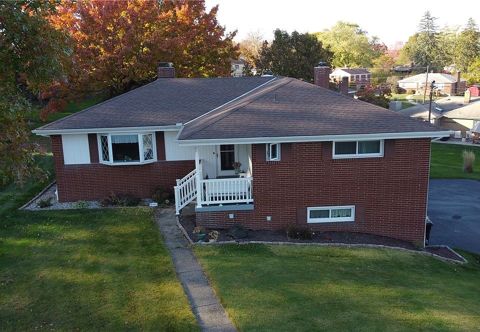 This contemporary brick ranch, tucked away at the end of a cul-de-sac, welcomes you with an inviting front porch. Enter and be delighted by beautiful hardwood floors. The gracious living room is bathed in light from large windows. The dining room opens to a stunningly renovated kitchen featuring green/gray cabinets with white, blue, and gray granite countertops, complemented by stainless steel appliances. A spacious first-floor family room boasts a brick mantel and decorative fireplace, while sliding glass doors open to a patio—a serene haven for watching birds, squirrels, bunnies, and deer. The large yard which encompasses the home offers privacy. The hall full bath has been updated, and there are three comfortable bedrooms; the master includes a half bath. The lower level features a finished game room, ample storage space, a large laundry room, and a full bath. Additionally, there is a two-car garage and an extensive workshop, all within walking distance to McCandless Crossings.