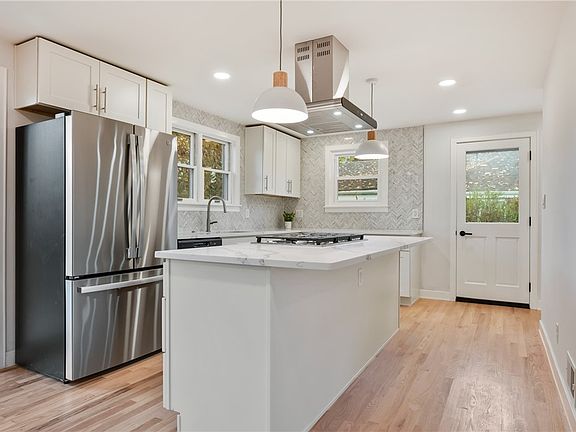 At the heart of the home is the newly renovated, open concept kitchen featuring stainless steel appliances, quartz countertops, and tiled backsplash. Beautiful oak details, and flooring add a touch of elegance and warmth throughout.