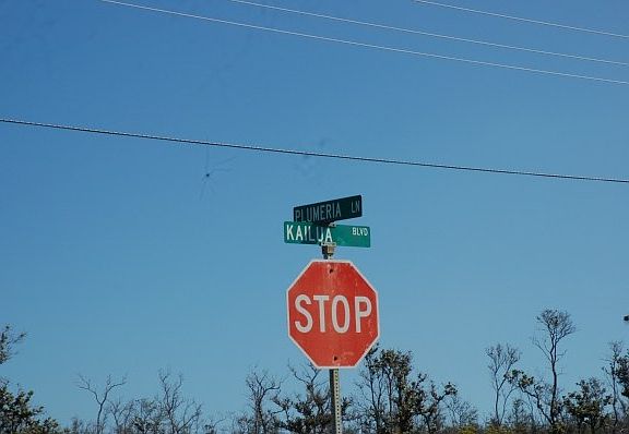 Lot 1 block 258 is approximately 122 x 356 corner lot containing 43,595 sf, more or less of small Ohia trees and native A'alii. There are four "fat lots" (122 x 356) on Plumeria Lane and four "medium lots" (89 x 489) on Kailua Boulevard. Yes, 8 contiguous lots in the middle of Hawaiian Ocean View Estates Subdivision with distant coastline, horizon, and sunset view! Owner financing with 20% down.