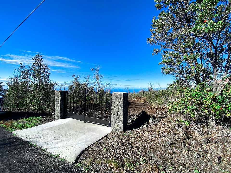 Welcome home to this (already gated) one acre property in Hawaiian Ocean View Estates. Dozing work done! Bring your building ideas here. Hard work already completed. Rock wall pillars on each side of drive and a paved entrance. Ocean Views are stunning. This lot is priced to sell. POWER! STAKED! Hawaiian Ocean View has a road maintenance fee of $150 a year subject to change.