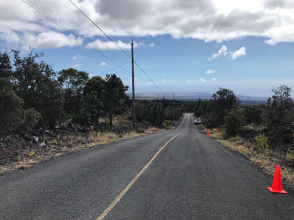 Beautifully landscaped by nature 70' x 623' lot on Plumeria Lane between Luau Drive and Coral Drive for 10K! Lot is around the 3200 ft elevation, in Lava Zone 2, Flood Zone X, with an ocean horizon and coastline view!