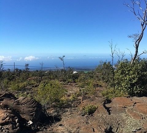 PRICE REDUCED! Beautiful ocean view from this nice corner 1 acre lot on Palm Parkway & Plumeria Lane. Build your dream home in Hawaii for an affordable price. Hawaiian Ocean View Estates has a mandatory road maintenance fee currently $150/year. Possible Lava tube on property per sellers. Unique lava ripples and features.