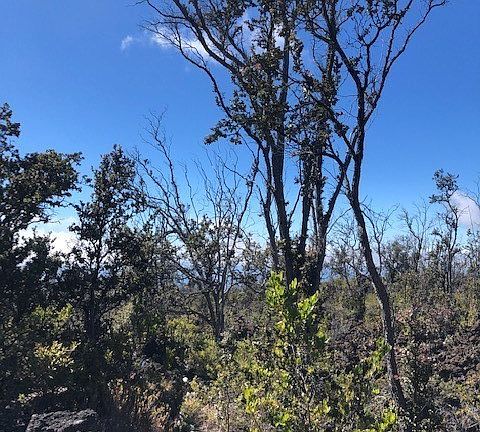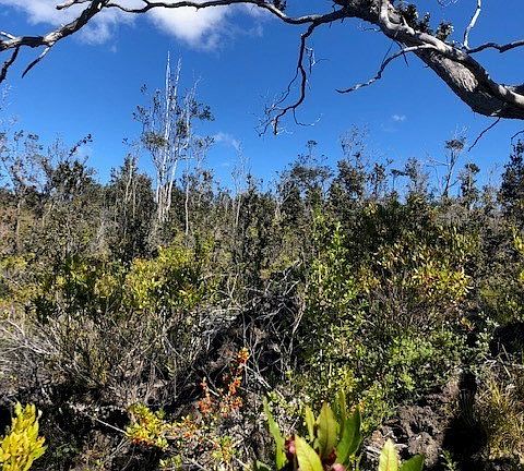 This is a forested acre in upper Hawaiian Ocean View Estates. It has a drive way and a small house pad on part of parcel nearest road and as you move into lot there is an ocean view to the west. A very nice lot at a cool elevation...for warm days and starry nights. All amenities are available in Ocean View Town Center...grocery stores, gas stations, hardware store and multiple restaurants, this is a rural and growing area.