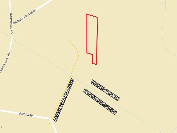 The property benefits from an access easement, although it DOES NOT extend fully to the public road. An existing farm path, historically used for agricultural access, connects to Pocosin Road without gates or physical obstructions. Further research may be necessary to determine if additional access easements exist.