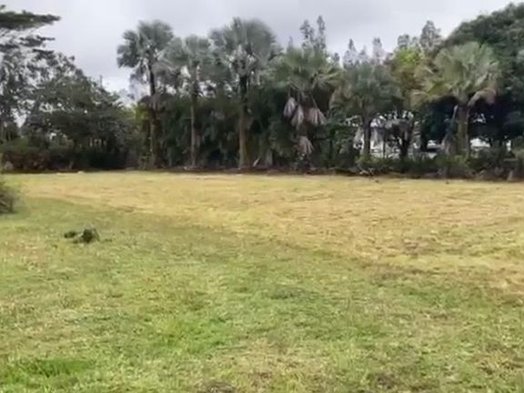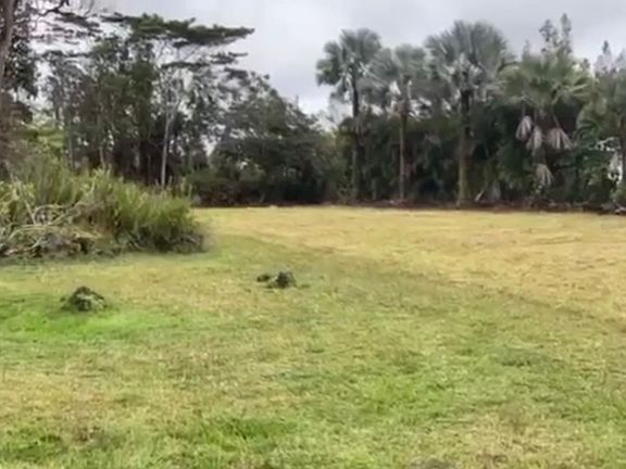 Large Rectangular lot the entire lot was bulldozed and leveled in 2004. Lot was recently cleared two months ago (bush cut) there are some trees remaining (local Ohias, imported palm trees and more. Property is fenced around 100 meters on the entire length of the neighbors side to the left of the property. The potential to build your dream home awaits buyers to do their own due diligence on whats allowable with the City and County HOA is $200.00 per year.