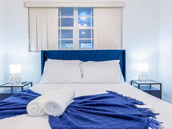 Indulge in a luxurious stay at our 4-bedroom Florida retreat, designed for relaxation and entertainment. Unwind in the master bedroom with a king-size bed, while three additional bedrooms offer cozy queen beds for ultimate comfort. Enjoy the convenience of three bathrooms, a soothing jacuzzi, and a pool table for fun-filled moments. Dine outdoors on the spacious patio, surrounded by lush mango trees, and explore nearby airports, stunning beaches, and top attractions just minutes away.