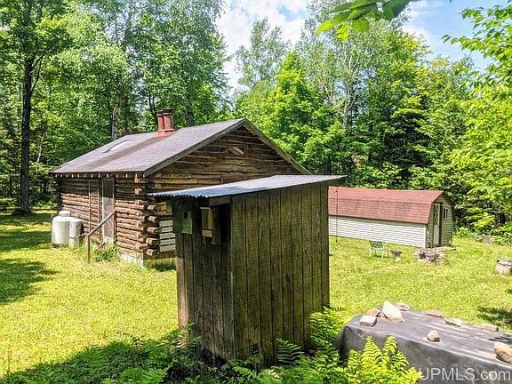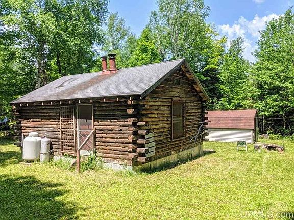 Ottawa Forest log cabin! It's not often you'll find a little log cabin on a couple of acres in the heart of the national forest. This one room cabin exudes northwoods charm inside and out. Inside is you'll find the aurora of polished log walls and beams in a room that flows around the classic woodstove. Bunks for four at one end with the kitchen/dining at the other all laid out over hardwood flooring. Propane powered lights bring a rich glow to an evening of relaxing and recharging before you head out to enjoy the 1000s of acres of Ottawa National Forest within walking distance of your door. With roads, trails and paths in abundance, you'll never want for a new adventure. Just a few miles in any direction you'll find lake and streams teaming with fish....or for a good float. Located on a year 'round road means you can even enjoy the abundant snow whether you're snowshoeing or snowmobiling. Cabin includes a propane oven/range and refrigerator and a nice outhouse for necessities.