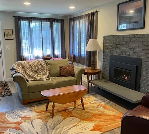 Warm up by the gas fireplace on a comfortable loveseat, recliner or old fashion rocking chair.