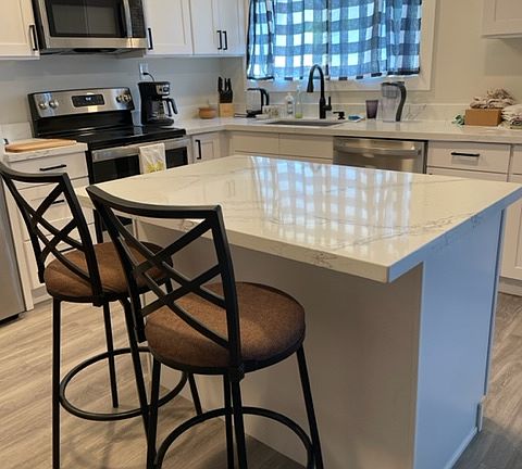This home has an open floor plan so you can have a pleasant time cooking in a full kitchen while watching the evening news, your favorite drama, or entertaining friends and colleagues.