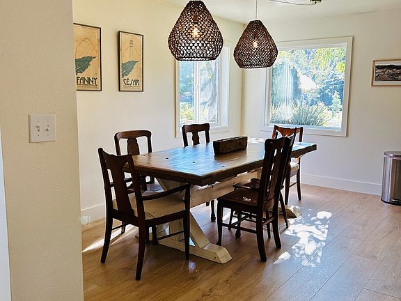Our freshly remodeled home is tucked into the hillside on a quiet, private road on 1 acre in the hills surrounding Port Orford. Property around house is surrounded by large trees and mature landscaping. Enjoy the 6 person hot tub right outside of family room and breathe in the fresh coastal air! Land around house is pretty flat, the property goes up the hill a bit to a small orchard, green house and large storage shed- big enough for boat or rv.