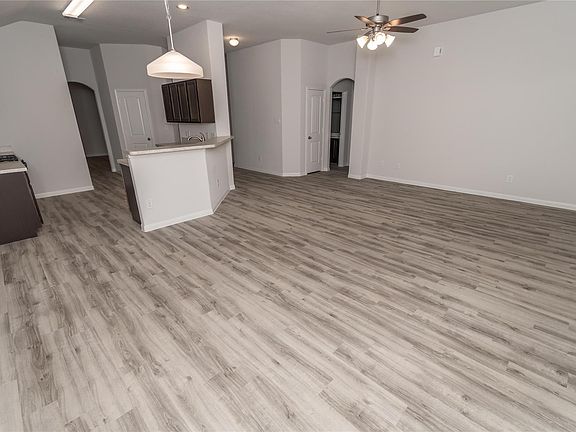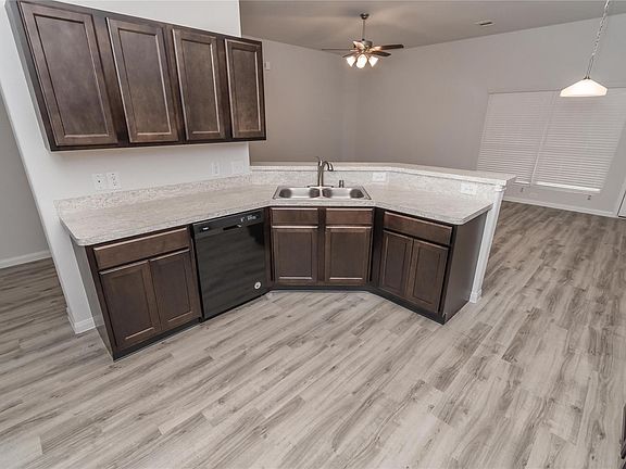 Beautiful 3 bedrooms and 2 bathrooms. A formal dining room greets you at the entry, while the open-concept kitchen flows into the family and breakfast areas ideal for everyday living or entertaining. The spacious primary suite includes a walk-in closet and a private bathroom with dual sinks and a separate tub and shower. Two secondary bedrooms are located on the opposite side of the home, along with a full bath and linen storage. A cozy fireplace and covered patio add comfort and style. Features include wood-grain vinyl plank flooring, a two-car attached garage, fenced backyard, and sprinkler system. All homes are SimplyMaintained for a $100 monthly fee that includes front and back yard lawn care and exterior pest control. Washer/Dryer Connections.
