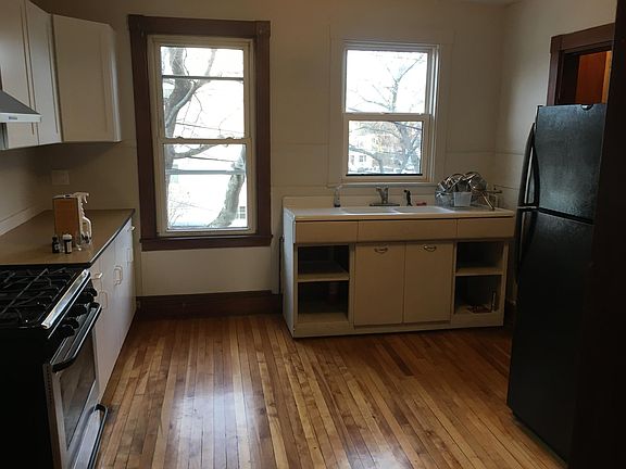 Large rooms, hardwood floors, vinyl windows, large yard, private balcony, off street parking, tall ceilings, range w commercial hood, large kitchen. Laundry and storage available. Snow plowing, water, included